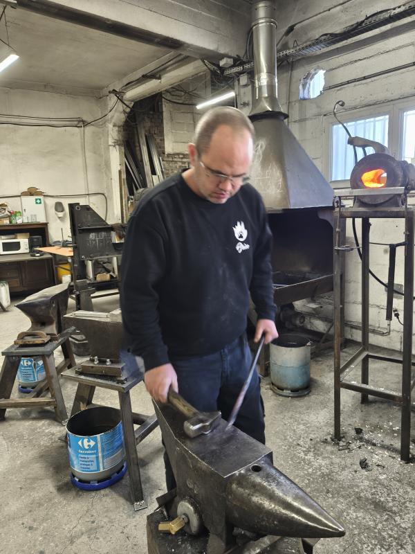 Il vous expliquera comment tenir le foyer et quelles sont les règles de sécurité à respecter. Vous aurez quelques exercices pour vous entraîner à la première prise en main dans le but d’appréhender la matière et de bien comprendre comment l’acier réagit à la chaleur et sous la frappe du marteau.