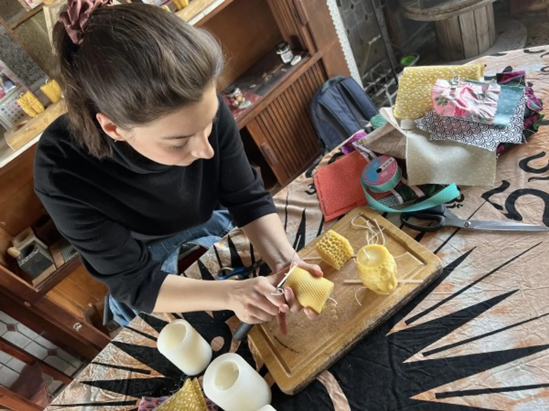 Puis, place aux choses sérieuses ! Vous réaliserez un bee wrap ainsi qu'une bougie en cire d'abeille.