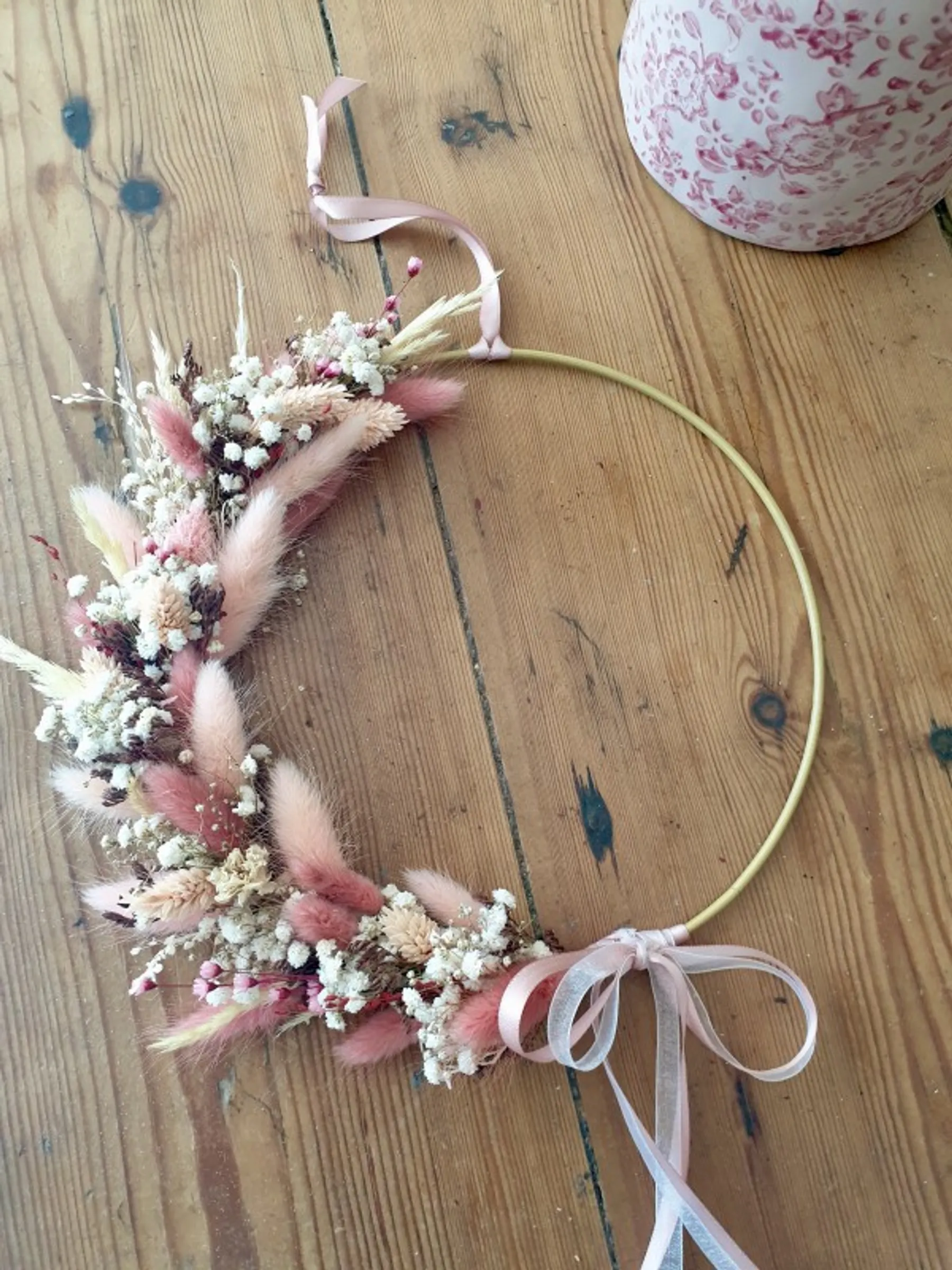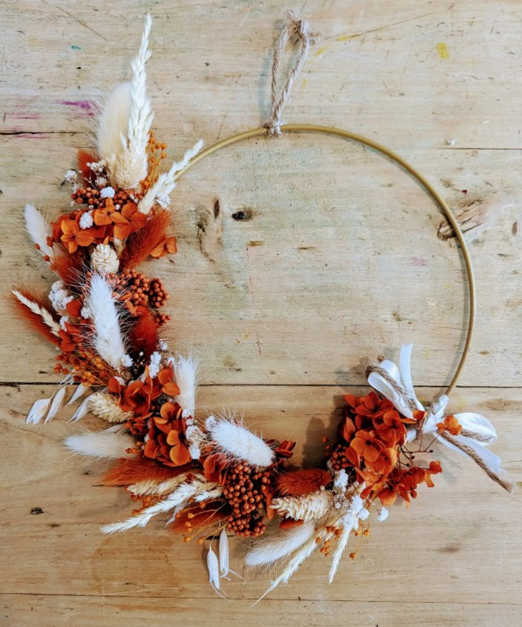 Découvrez l'art floral et créez votre couronne de fleurs séchées avec Linda, artisan fleuriste
