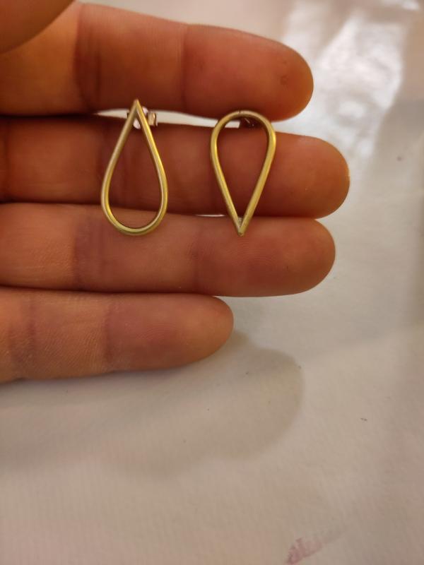 Une fois les gestes acquis, vous déciderez de la forme à donner à vos boucles d'oreilles : de multiples options s'offrent à vous, cercles, gouttes, formes aléatoires, à vous de choisir. Les boucles d'oreilles sont en laiton, seulement la tige est en argent.