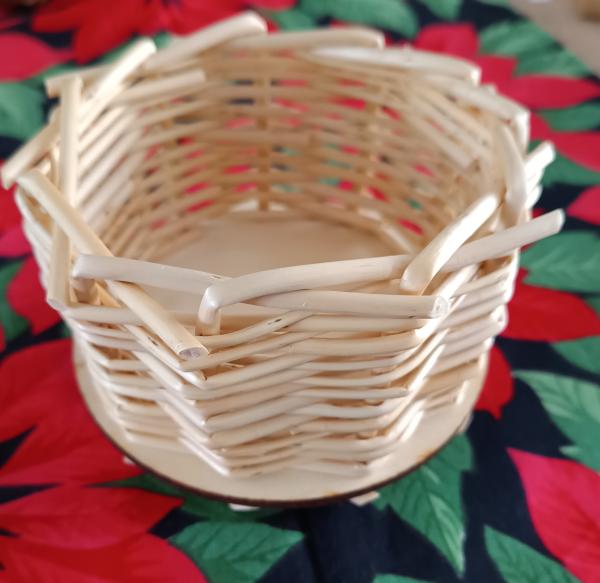 À l'issue de l'atelier, vous repartirez fièrement avec votre jolie petite corbeille en osier (d'environ 12 cm de diamètre et d'une hauteur de 5 à 6 cm), idéale pour y ranger de petits objets ou en faire un magnifique vide-poche.