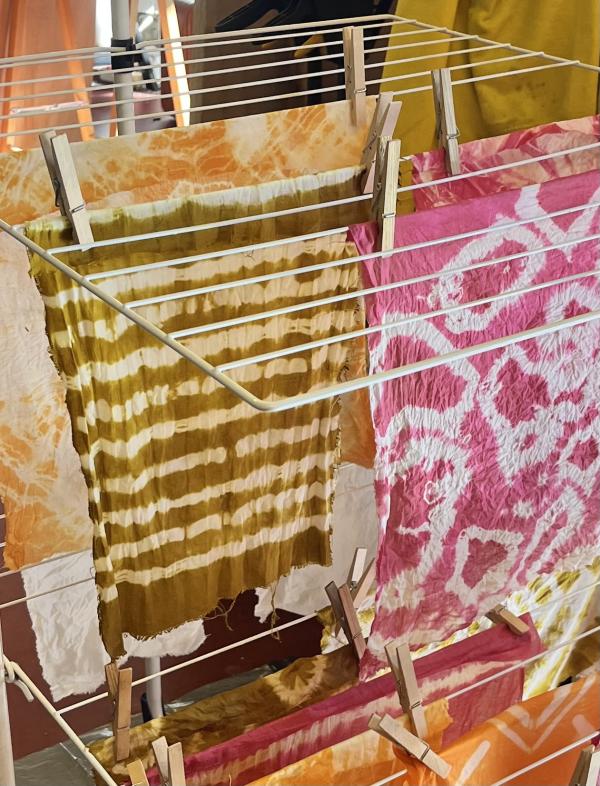 Si souhaité, Marianne pourra vous montrer la technique du shibori qui consiste à plier le tissu pour faire apparaître des motifs.