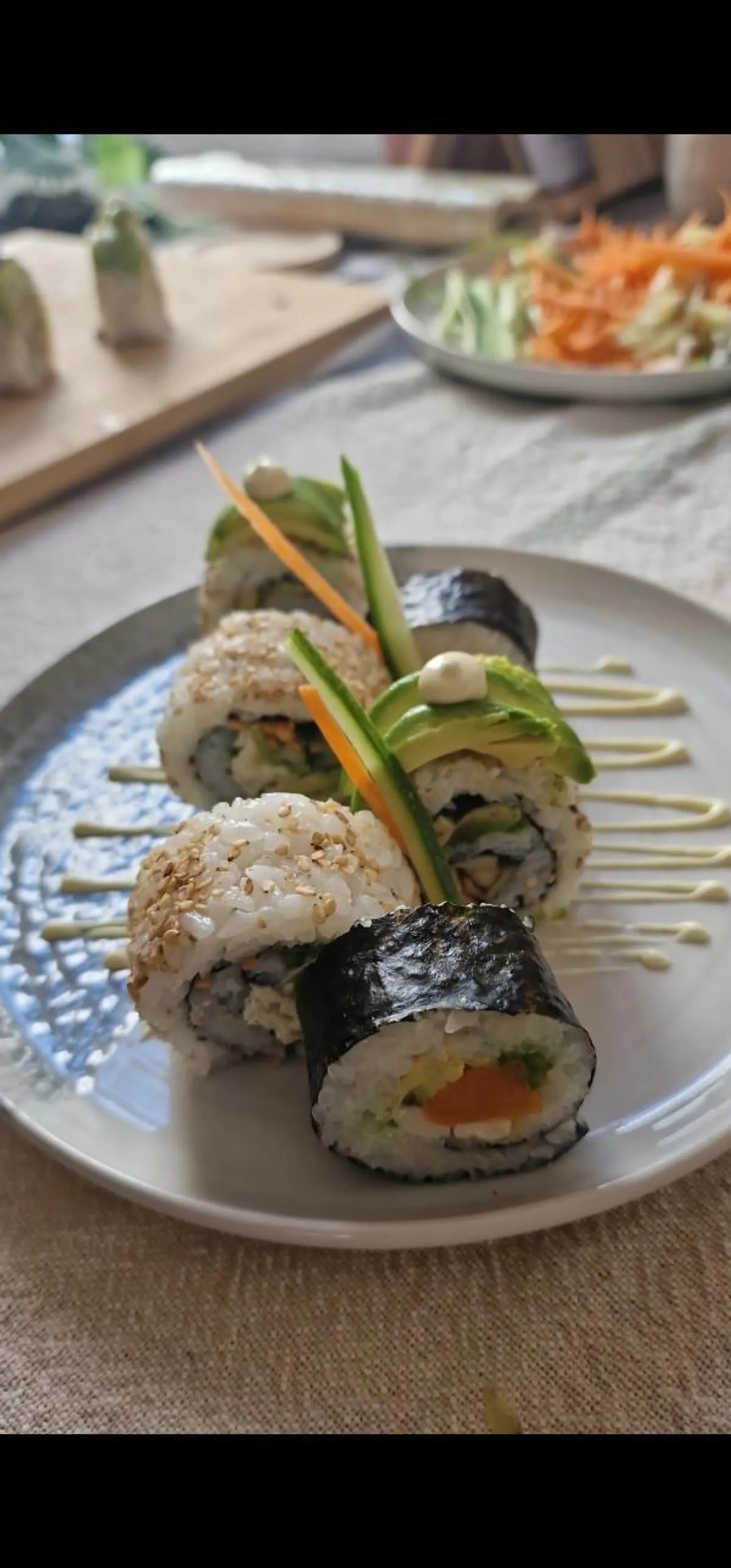 Cette artisane passionnée sera ravie de vous accueillir lors de votre arrivée sur les lieux de l'atelier. Après avoir fait connaissance autour d'une boisson chaude, elle commencera par vous expliquer le déroulé de la session, ainsi que par vous présenter le menu du jour. Au programme ? La réalisation de délicieux makis et sushis entièrement vegan, à base de carottes, avocats, algues fumées, concombre mariné, aubergine, miso ou patate douce en tempura... De quoi se régaler !