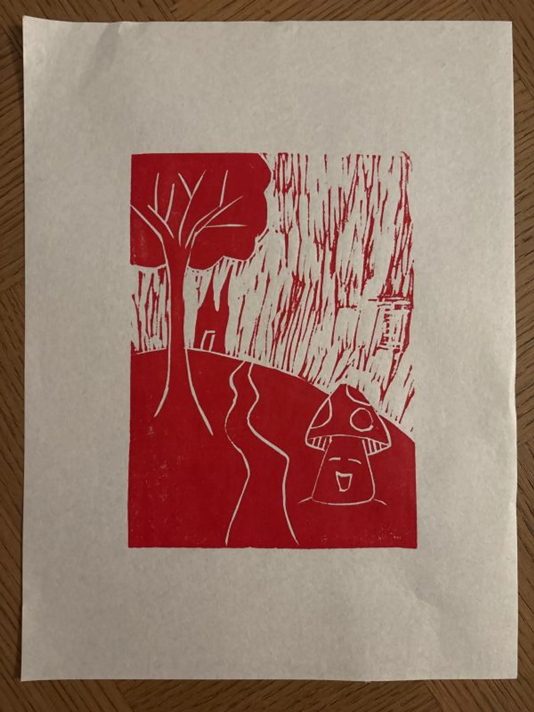 • Impression : après avoir découpé le papier, déposez-le soigneusement sur la plaque encrée en vous assurant qu'il soit bien aligné. Utilisez une presse ou frottez le dos du papier avec une cuillère en bois en appliquant une pression uniforme et forte sur toute la surface pour transférer l'encre. Laissez la magie opérer et découvrez votre belle œuvre linogravée.
