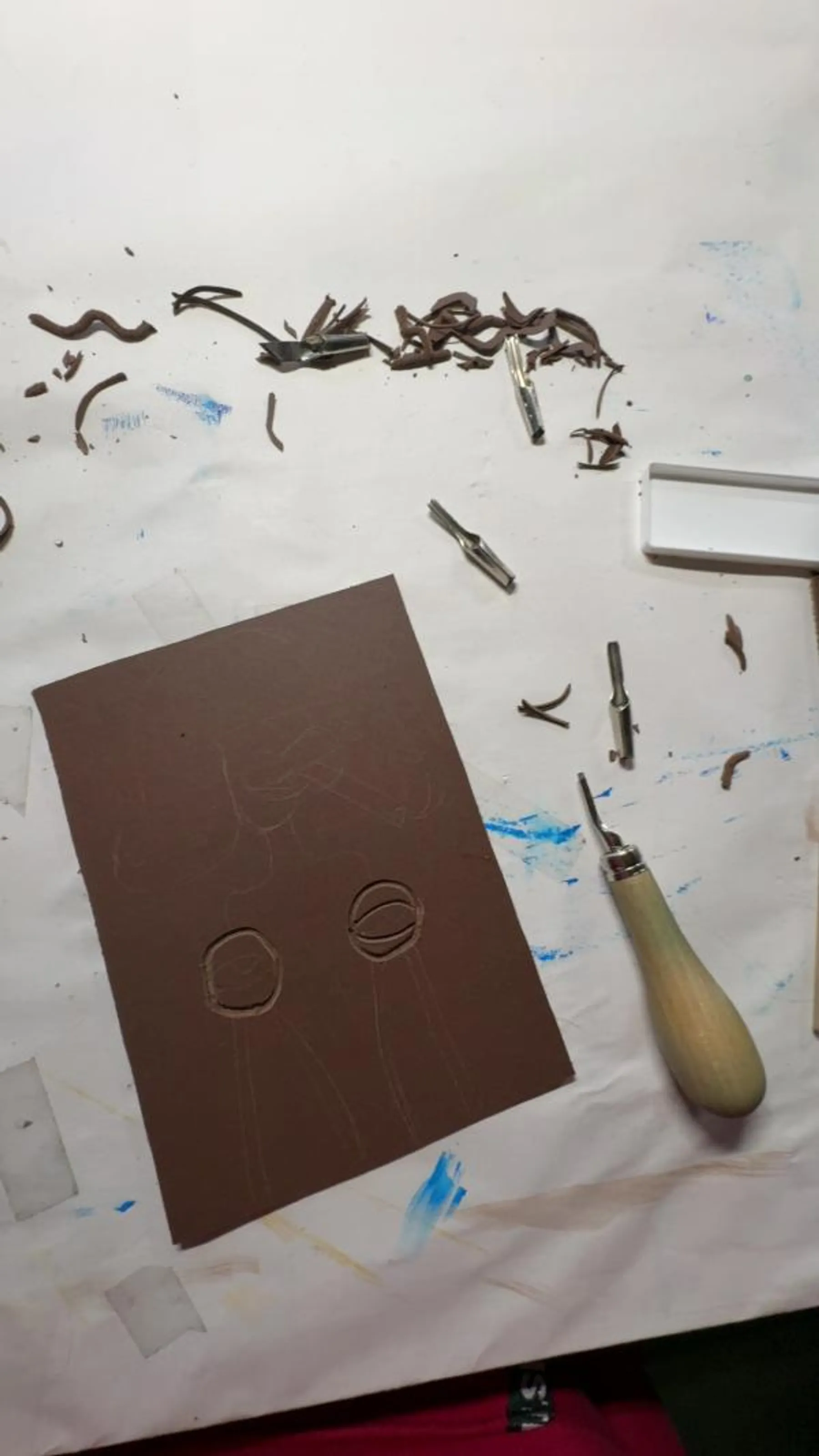 • Gravure : à l'aide de gouges, gravez patiemment chaque détail de votre design, dévoilant ainsi votre création. Profitez d'une pause autour de café et de boissons pour partager un moment convivial.
