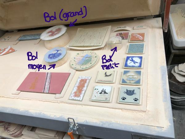 - La récupération de vos créations se fera sous 48 à 72 heures en raison de la cuisson qui dure 12 heures et d'un éventuel collage pour certaines œuvres.