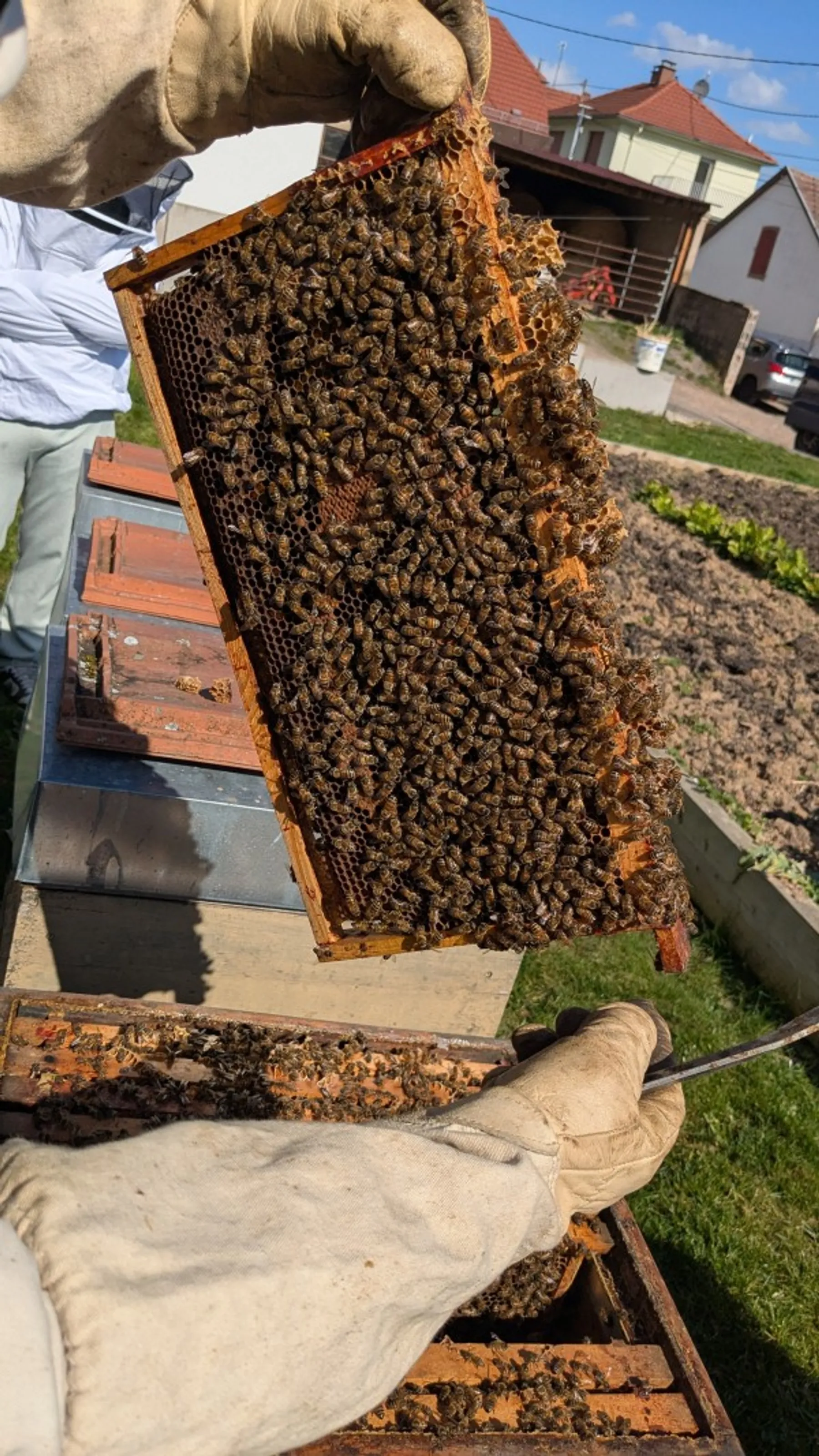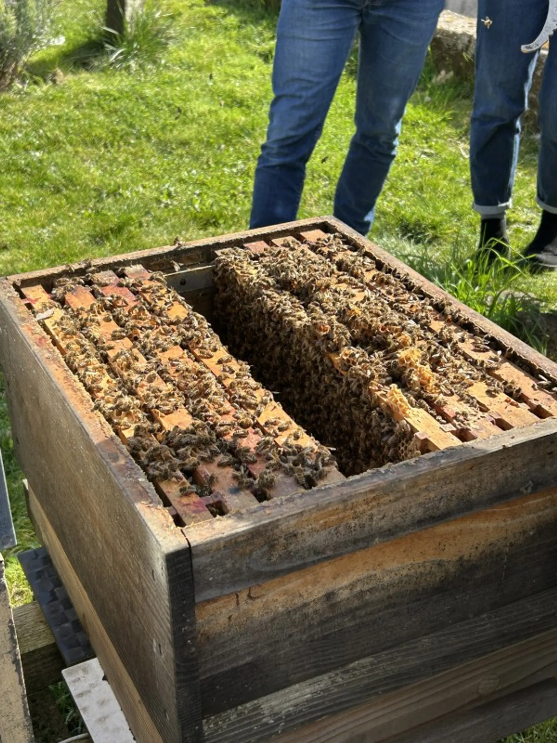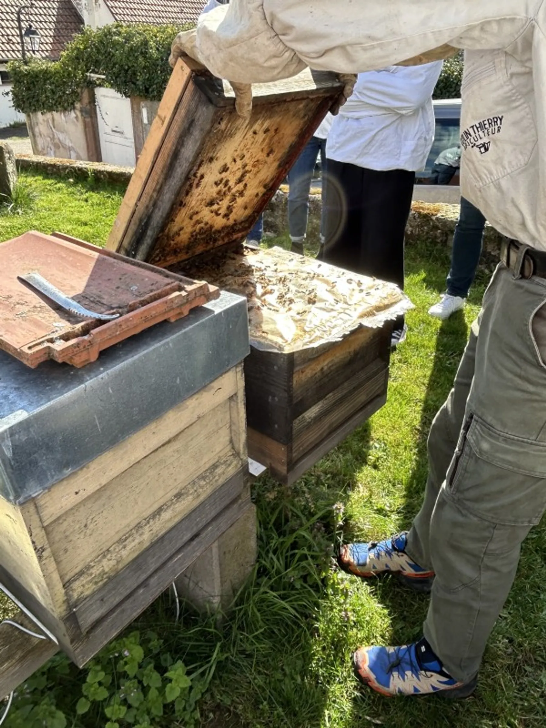 Puis, place à la pratique ! Vous découvrirez les ruches et apprendrez à manipuler un cadre. Thierry vous montrera la reine ou encore un faux bourdon s'il y en a. Psst ! Attention, il ne sera pas possible d'ouvrir les ruches s'il pleut.