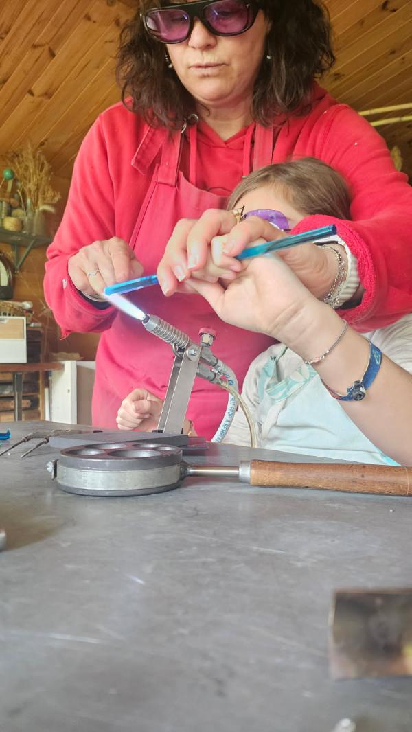 Initiez votre enfant au travail du verre au chalumeau et laissez son imagination filer en réalisant ses billes uniques avec Audrey, artisan verrier
