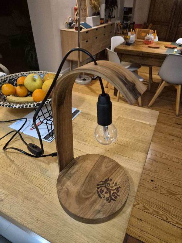 Une après midi très agréable avec David qui est un passionné du bois et aime transmettre ses connaissances accompagnées de ses propres expériences. Je suis particulièrement fière de ma lampe en noyer qui est magnifique, avec de plus la touche personnelle du gravage possible sur le socle. Super. Merci David.