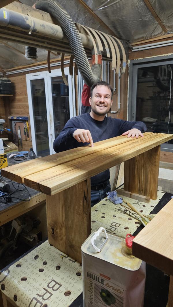 Très belle journée avec Marion lors de la fabrique d'un magnifique banc de style japonais en bois de châtaigner. J'ai appris mille choses, de l'utilisation des outils et machines: scie radiale, scie sur table, scie à ruban, défonceuse, fraiseuse domino, perceuse à colonne, ponceuse, scie japonaise...aux moult petits conseils et secrets pour fabriquer de jolis objets avec une griffe personnelle... A tous les amoureuses et amoureux du bois, je recommande cette session qui ne vise pas seulement la fabrication d'un bel objet mais qui est apprentissage accéléré des bases de l'ébénisterie. Merci Marion et bonne poursuite de vos projets !