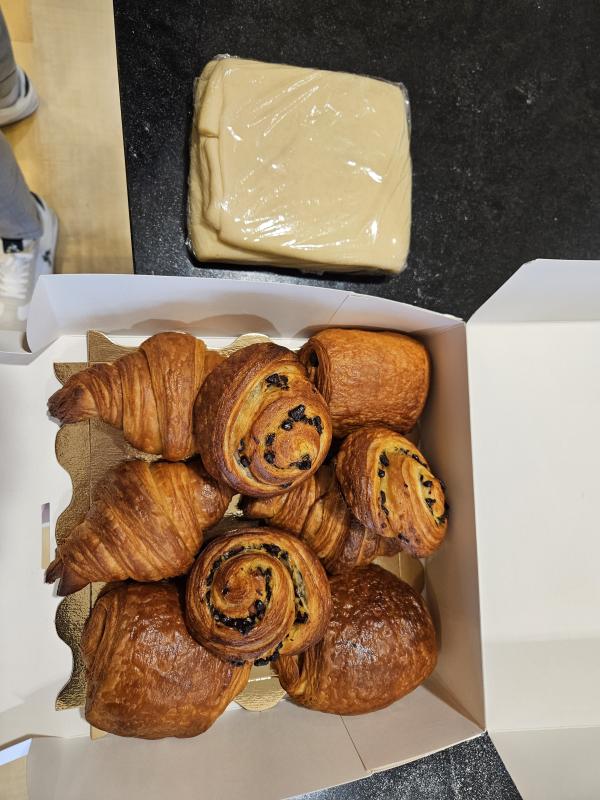 On a fait l'atelier viennoiseries. En un mot, super! Atelier très bien organisé avec les contraintes de la "levée des viennoiseries". Pas de temps mort. On apprend plein de choses et on repart avec des viennoiseries délicieuses 🤩