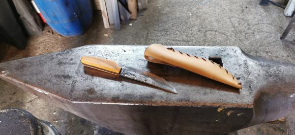 Première expérience de forge pour mon conjoint. " La journée commence par quelques explications du déroulé de l'atelier et des bases théoriques pour confectionner le couteau. Vient ensuite la pratique, grâce aux conseils et démonstrations de Nicolas, il est alors facile de se lancer et réaliser le couteau imaginé. J'ai pris plaisir à utiliser les différentes machines et suis fier du travail réalisé ! Un aperçu du couteau ...