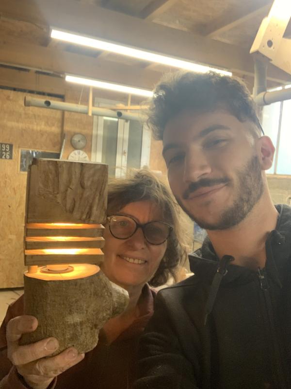 Super atelier de lampe en bois avec Mathis ! C’est un cadeau que j’ai offert pour mon conjoint qui était menuisier il y a quelques annees. Ça lui a fait plaisir de retrouver le travail du bois. De mon côté, je n’avais jamais travaillé le bois au paravant. Tout est bien expliqué par Mathis qui nous montre et accompagne tout au long de l’atelier. Nous sommes répartis chacun avec une lampe personnalisée.