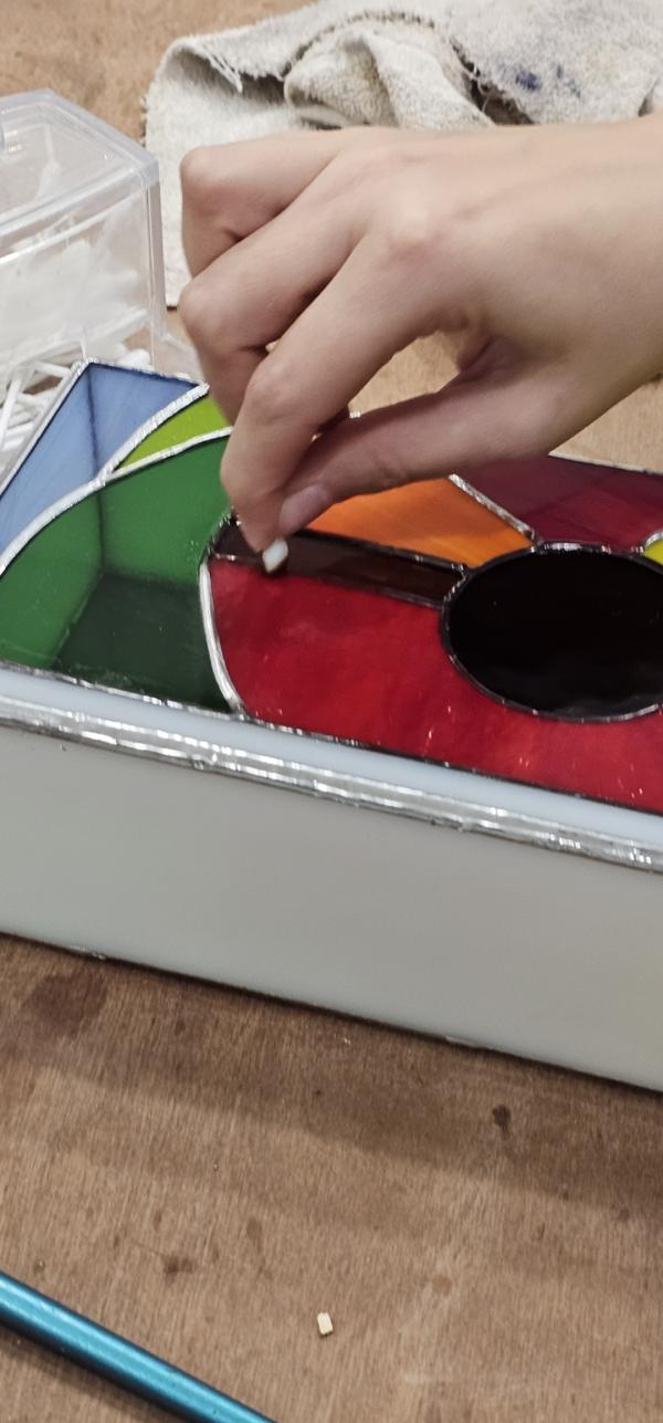 Très bonne journée d'atelier, studieuse et riche d'apprentissages. J'ai adoré apprendre les secrets du verre, matériau magique, et fabriquer cette lampe étape par étape avec l'aide, la pédagogie et le soutien de Patrick ! :) Je recommande vivement à toutes et tous les curieux, les passionnés, les bricoleurs du dimanche... le vitrail est définitivement une activité fascinante ! (Et encore merci pour le dépannage ;))