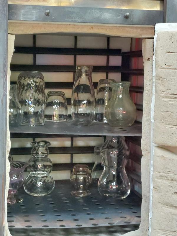 Votre lot de 2 verres et votre carafe, en verre transparent et de couleur, seront disponibles dès le lendemain. Thomas passe le verre en re-cuisson pour le finaliser et cette étape prend toute la nuit.