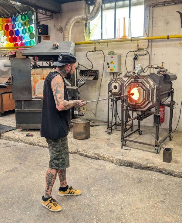 Thomas commence par vous présenter les différents outils et techniques nécessaires avant de vous briefer sur les consignes de sécurité indispensables pour souffler du verre. Une fois briefés, vous commencez à dompter la matière en fusion. La première étape consiste à cueillir le verre et à le façonner pour comprendre comment la matière évolue et se comporte en changeant de température.