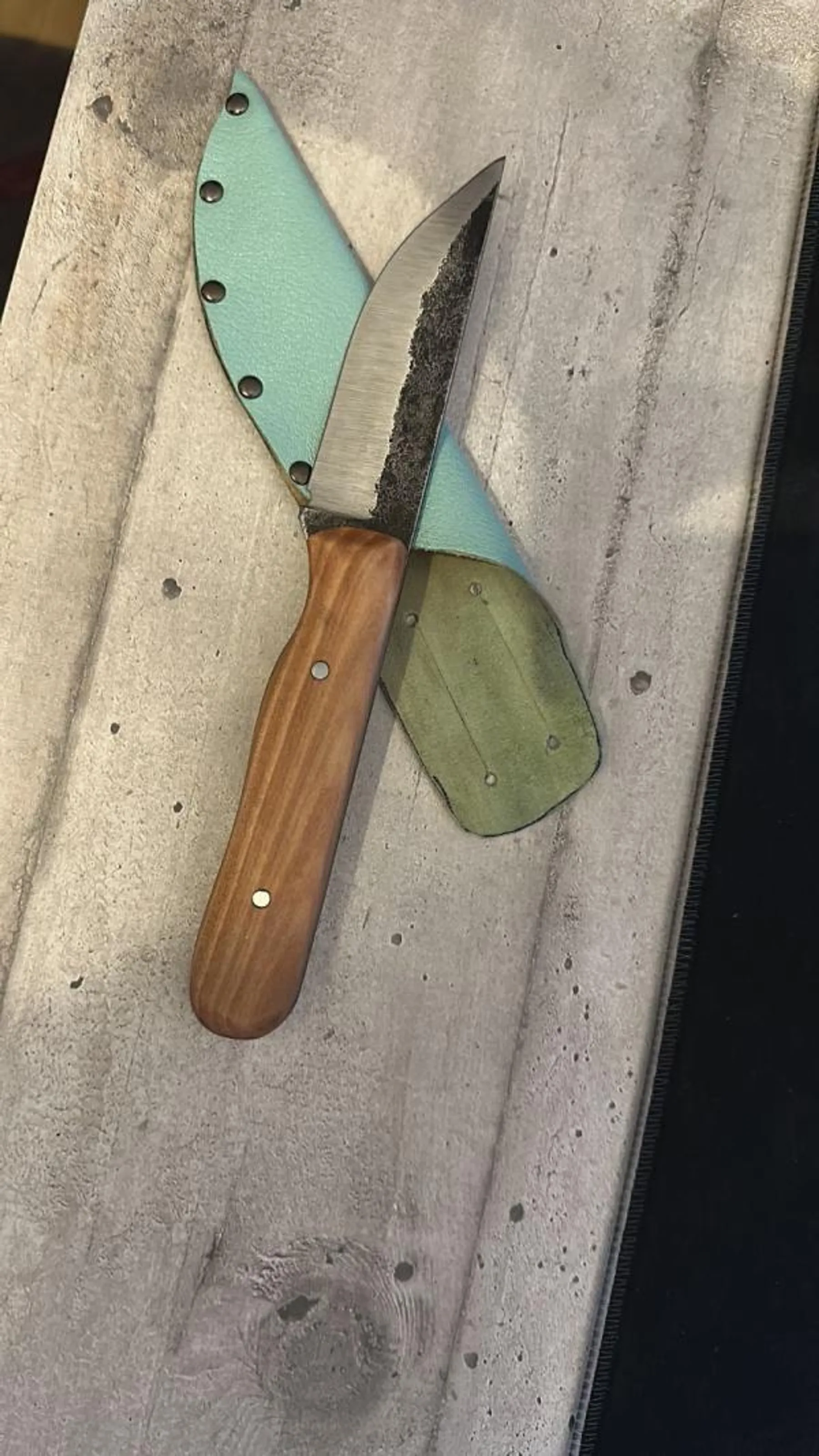 Votre couteau droit forgé + son étui en cuir