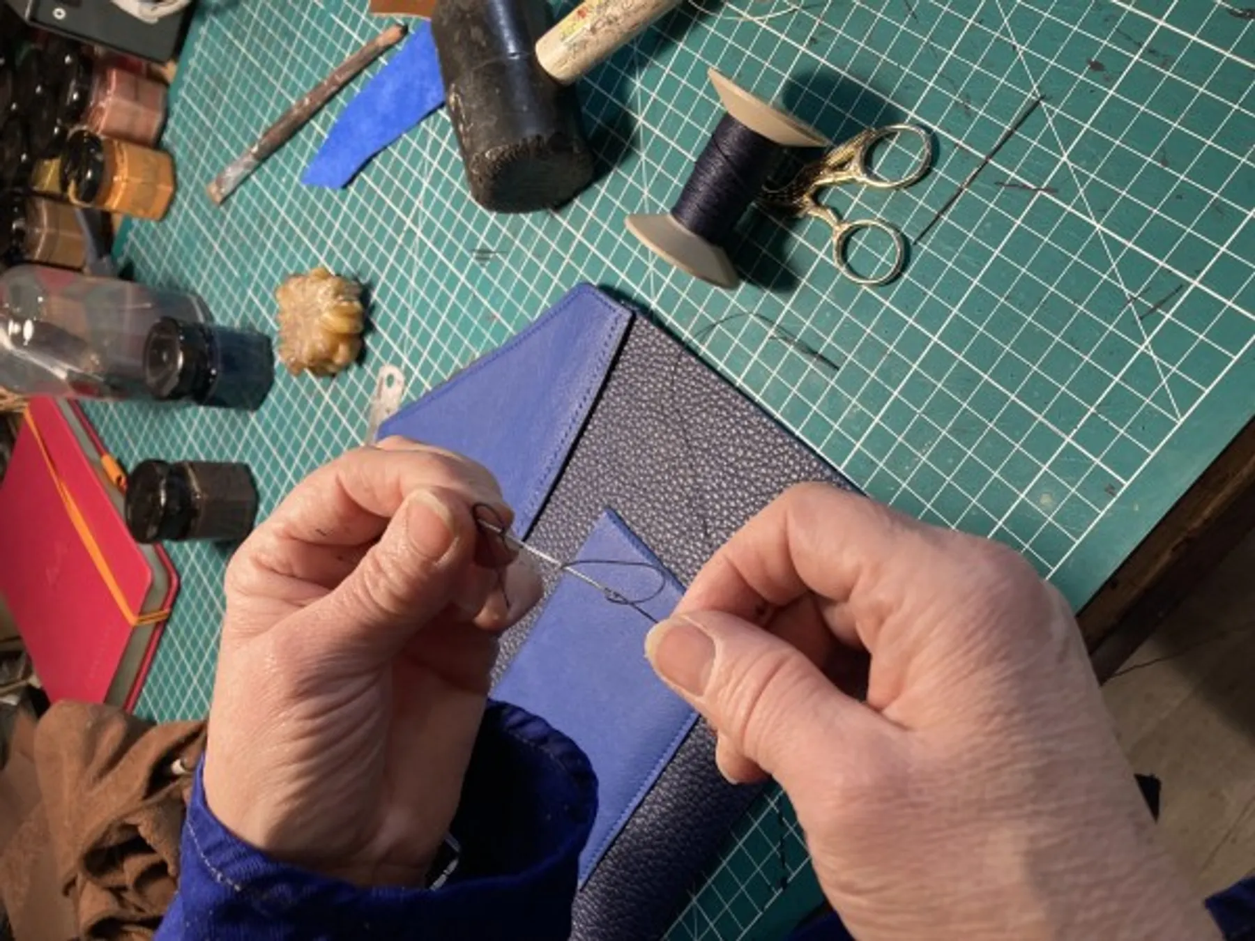 Découvrez la maroquinerie et réalisez votre sac pochette en cuir avec Mélanie, artisan maroquinière