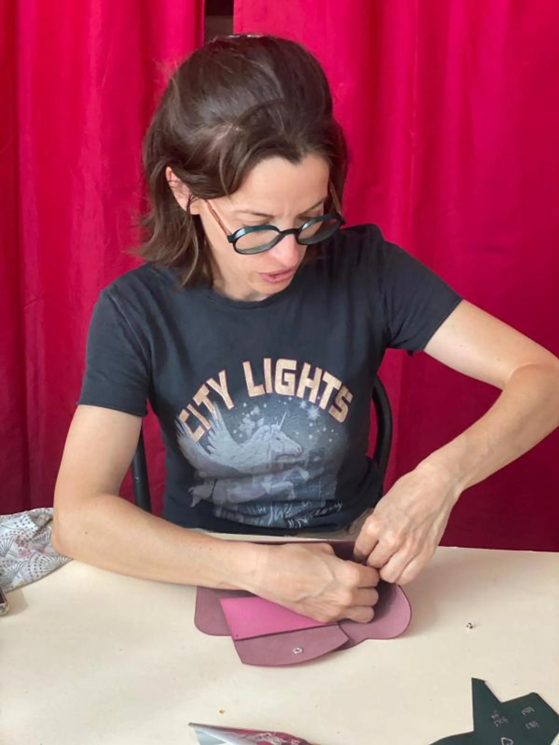 Aux côtés de Ghislaine, vous débuterez par choisir les cuirs et accessoires qui vous plaisent. Viendra ensuite le temps de la découpe du cuir et de la réalisation, avec cutter et applicateur de teinture. La maroquinière vous guidera alors pour le collage et la finition des tranches. La couture à la machine est optionnelle, en fonction de vos choix esthétiques. Le montage, lui, est certain ! Rivets et pressions entrent dans la danse.