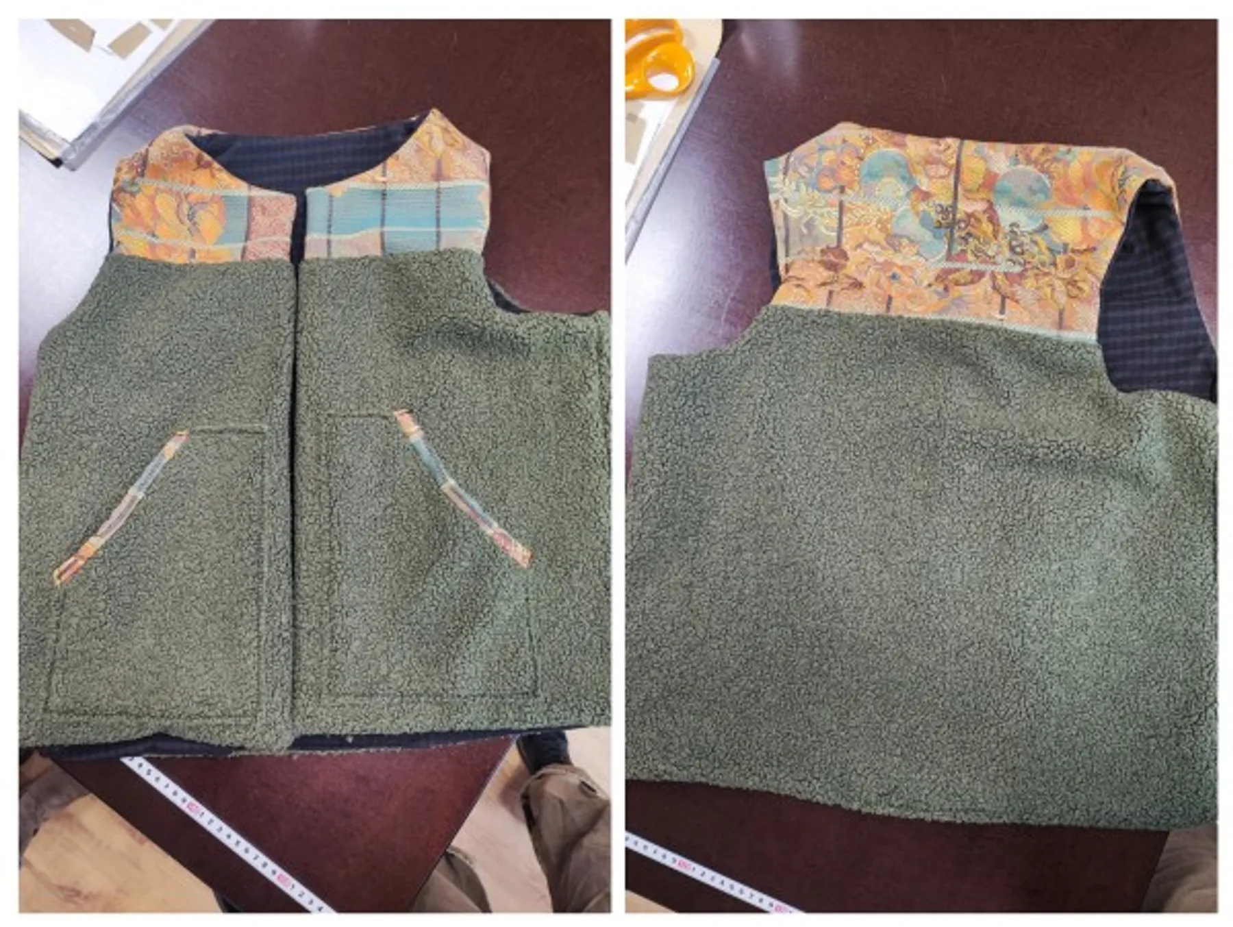 Puis, vous pourrez choisir pour votre création votre couleur de fausse fourrure, ou mouton. Aline vous présentera les patrons, réalisés par ses soins, qui pourront bien sûr être ajustés en fonction de votre taille. Elle vous apprendra la découpe de la fourrure puis l’utilisation de la machine à coudre. Vous confectionnerez vous-même votre gilet : de la couture à la mise en place de la doublure.