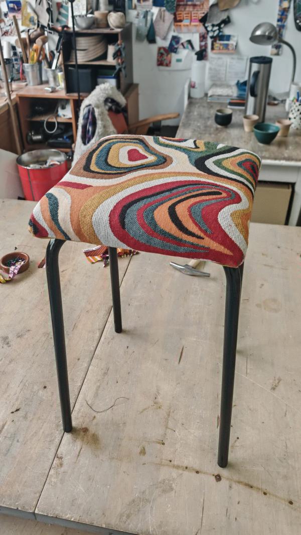 Cet atelier etait un très bon moment ! Carole est passionnée , elle sait partager son quotidien Je suis ravie de mon tabouret qui a trouvé sa place dans mon intérieur