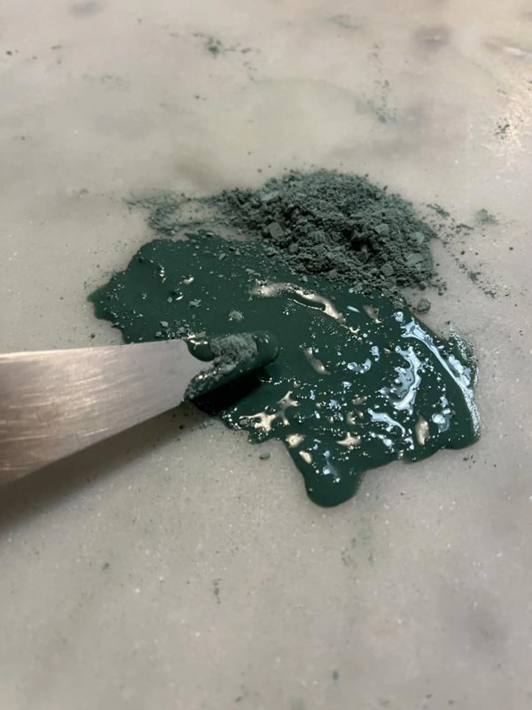 Puis, vous broierez vous-même les pigments sur une plaque de marbre à l’aide d’une molette en verre. C'est ce travail de précision et de patience qui révèlera toute la richesse de la couleur.